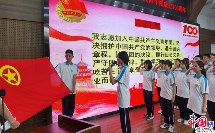 中国网5月16日讯(董容榕)5月12日,成都市大邑县安仁中学校团委在学校党总支部的引领下,举行了庆祝中国共产主义青年团成立100周年“青春心向党·建功新时代”2022年共青团表彰暨入团仪式。