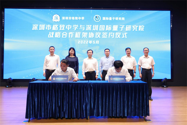深圳市格致中学校长魏恤民、深圳量子科学与工程研究院党支部书记刘松分别代表双方签约。