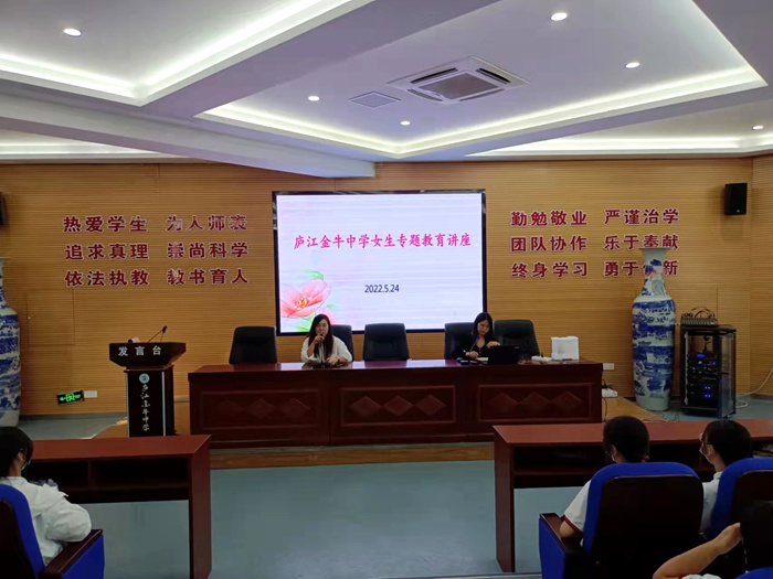 5月24日和25日下午,庐江金牛中学专门为高一、二年级女生准备了心理健康教育讲座,学校心理老师张丽军为本次讲座的主讲人,教务处主任周霞、教科室副主任汪学云分别主持了本次讲座。