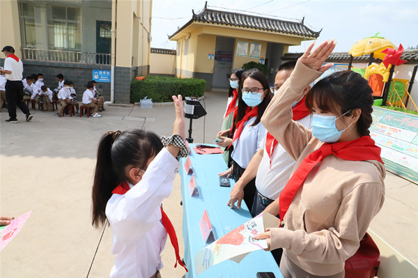 志愿者赵铭真鼓励同学们要好好学习,用知识改变命运,考上大学实现自己的梦想,要学会感恩,感谢党和政府、社会爱心人士对他们的帮助,长大后用实际行动来回报社会。(铭真希望爱心小学供图)