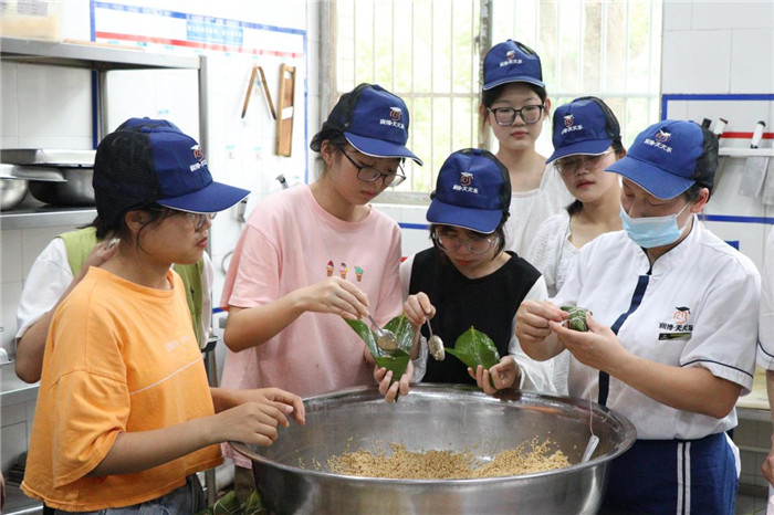 恰逢端午传统节日,食堂开展劳动教育课程,落实“劳动育人”理念,让学生在感受节日温暖的同时拥有劳动体验。后期,食堂还会开展更多活动,让学生在玩乐中有所学和有所得。(文/学生记者 李婷 方艳君 卢莹莹 图/学生记者 柳照雪 刘菁)
