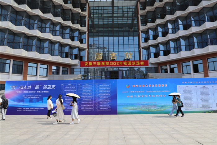 为更好地拓宽毕业生就业渠道,提高就业质量,扎实做好“稳就业”工作、落实“保就业”任务,近日,安徽三联学院联合合肥经济技术开发区人力资源中心、肥西县人力资源和社会保障局在校图书馆广场共同举办“厚德博学 扬帆远航”2022年春季校园专场招聘会。