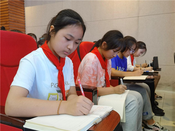 新华学校的中国网小记者们一边听课一边做笔记