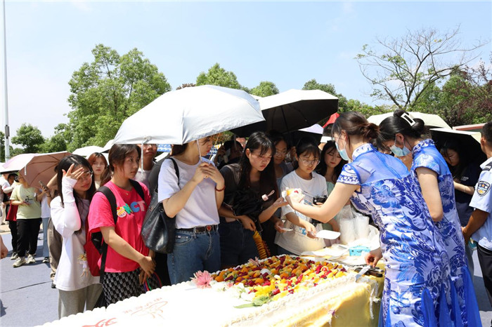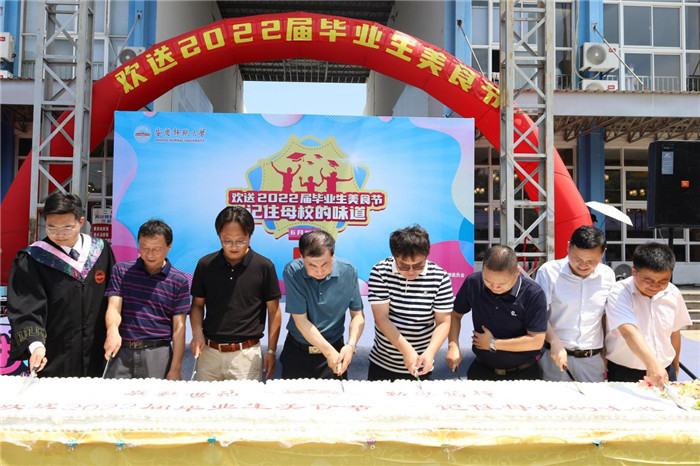 在美食节启动仪式上,刘友忠与相关职能部门负责人和毕业生代表一起共同切开寓意美好的蛋糕。刘友忠表示,学校用这种方式欢送毕业生奔赴远方,希望学生们在奔赴新的前程时,记住母校的味道,欢迎学生们常回“家”看看。