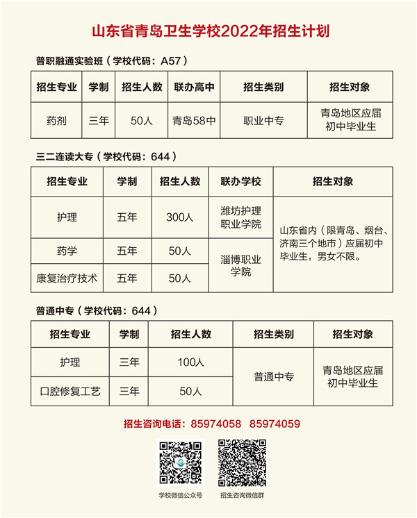 2.报考普职融通实验班和普通中专的考生,须为青岛地区(含全部区市)2022年初中应届毕业生。