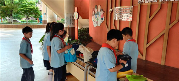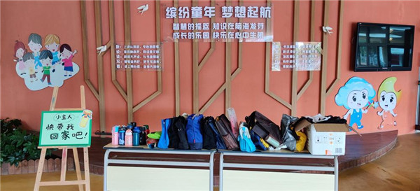 为了让队员们心爱的物品随小主人回家,少先队组织全校队员开展“小主人,快带我回家吧!”失物招领活动。物品按照水杯区、衣服区、提包区整齐地摆放在桌子上。不多时,闻讯而来的队员们把“失物招领处”围得水泄不通。队员们仔细核对物品型号、观察失物特征,认领自己的物品,当找到与自己“分别已久”的物品后,纷纷露出失而复得的喜悦之情。