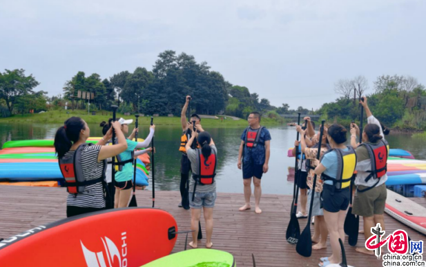 中国网讯 为加快推进全民健身运动进社区,丰富群众文化体育生活,近日,由成都市龙泉驿区洛带镇八角井社区主办,成都市龙泉驿区启迪社会工作服务中心承办的“爱成都·迎大运 心聚力·艇身而出”桨板活动在洛带湿地公园展开。
