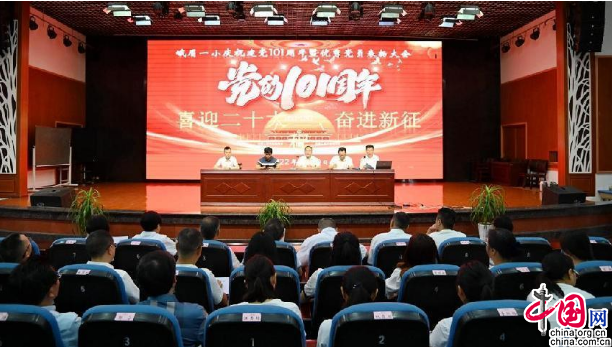 中国网7月4日讯 近日,峨眉山市第一小学党总支部开展了主题为“喜迎二十大、奋进新征程”庆祝建党101周年暨优秀党员表扬大会。会议由党总支部副书记林茂禄主持。