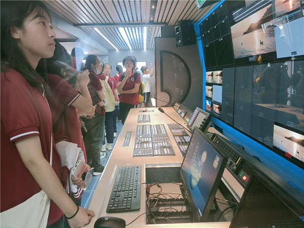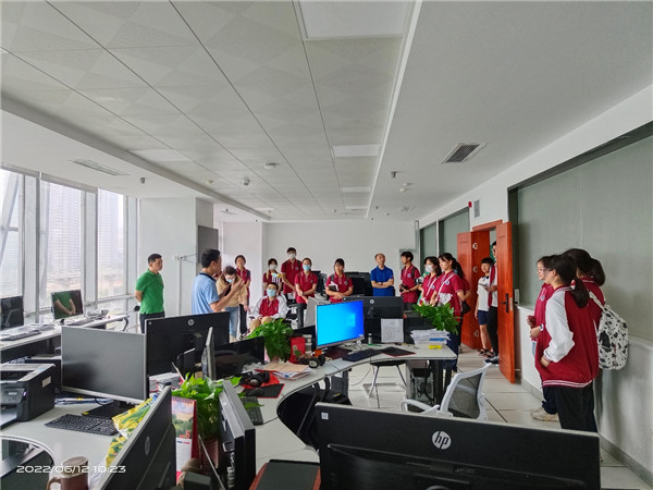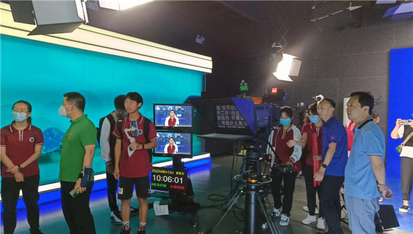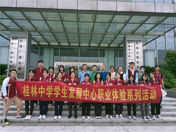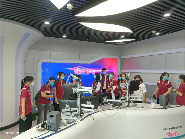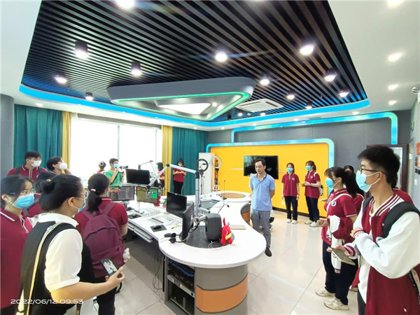 为加深学生对新闻工作的了解,培养学生综合媒体素养,桂林中学25名师生一行,于6月12日来到桂林广播电视台和桂林国际融媒体中心开展参观、体验活动。桂林中学党委副书记、副校长陈现梅,学生发展中心主任孙丹,安保处副主任潘晓莲带队参与了本次活动。本次参观活动由桂林广播电视台技术部负责人刘志刚,技术部业务主管李峰、全冠阁,融媒体部业务主管蔡琦钢接待和介绍 。