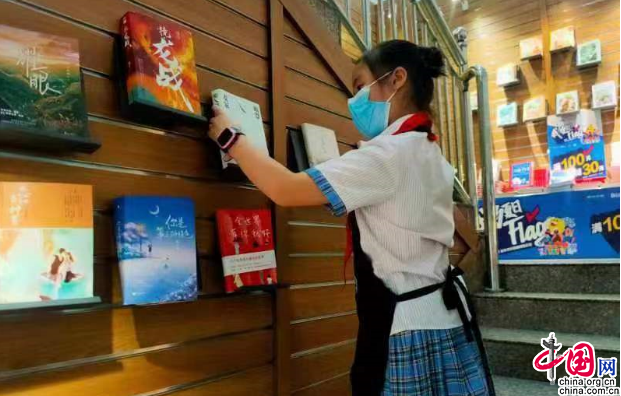 放假前,学校在各班广泛宣传“红领巾护书员”志愿活动的目的、意义、要求,并组织热爱图书、热爱劳动、身体健康、有较强责任心和团队协作精神的少先队员报名参加。从7月1日到8月18日,三、四年级各班每天轮流到书店开展活动。家长们大力支持,孩子们热情参与。在岗前培训,学习技能时,少先队员们穿着整齐的校服,佩戴鲜艳的红领巾,来到文轩书店,自觉遵守防疫要求,填写好相关信息。文轩姐姐热情接待并带领少先队员们参观书店、熟悉卖场,为他们介绍了图书管理员工作的基本职责,并对少先队员们进行了岗前培训:教给他们图书分类、布局、上架、造型陈列、打包的方法,以及导购礼仪和简单的消防知识。