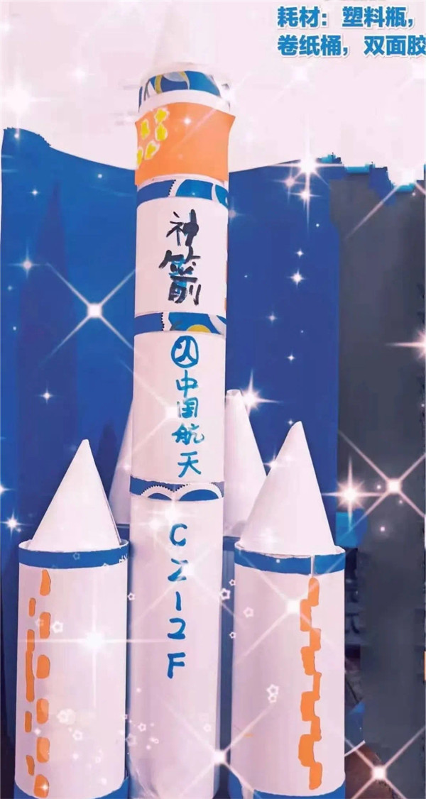 用最普通不过的材料,巧手创造,表达自己深沉的爱国情、报国志。今天临汾一中第一附属学校的同学们用创意手工致敬航天精神,期待明天共创中国航天的美好未来!