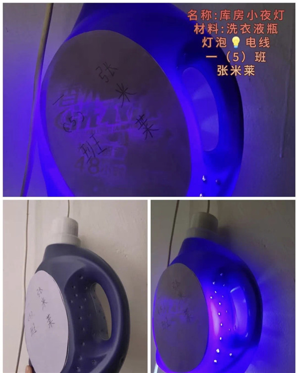 创作源于生活。一次性筷子、塑料瓶、旧红包,就连洗衣液桶也能创造美,同学们心灵手巧,用不同的方式表现了他们对生活的热爱。瞧!同学们制作的灯具构思巧妙、形式多样,多有趣呀!