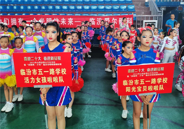 7月26日,临汾市五一路学校共派出中小学3支啦啦操队伍,参加了由临汾市体育局主办,尧都区卫体局、市啦啦操运动协会承办的“喜迎二十大 奋进新征程”2022年山西省群众文化活动暨“奔跑吧·少年”临汾市啦啦操锦标赛。与来自临汾市各县(市、区)、卫(教)体局、体育协会、学校、俱乐部、社会团体组成的19支队伍537名选手同台竞技。