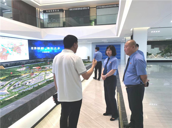 在海城菱镁产业发展服务中心,林旭晖与检察官们一起参观了数字化公共服务平台,详细了解了展览展示平台、检验检测平台、人才引进及技术成果转化平台、菱镁产业数字化公共平台、融资平台等五个平台的建设。