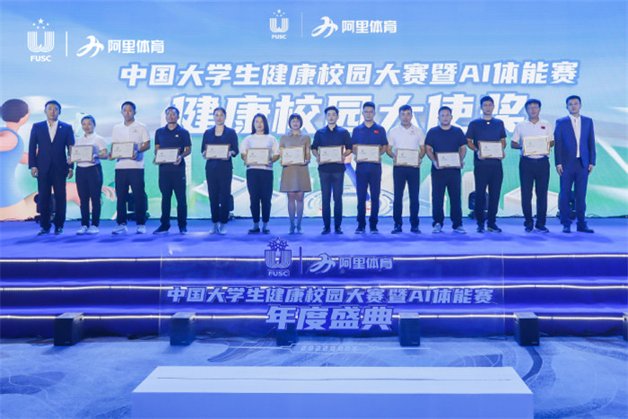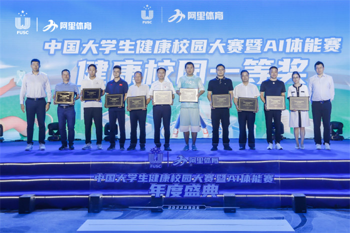 8月6日下午,中国大学生健康校园大赛暨AI体能赛年度盛典在重庆举行。来自20个省(自治区、直辖市)超过50所高校的师生齐聚一堂,见证这属于中国大学生最大规模线上赛事的年度盛典。大赛历时6个月,共有来自全国30个省区市的351所高校逾45万在校生参加。经组委会综合评定,共有44所高校达到认证标准,入选一、二、三等奖获奖名单。安徽三联学院荣获健康校园一等奖,体育部金子涵老师荣获健康校园大使奖,郭仕超、张萍等12名同学以优异的完赛表现,荣获学期体育奖学金。江秀丽副校长及金子涵老师应邀出席颁奖典礼。
