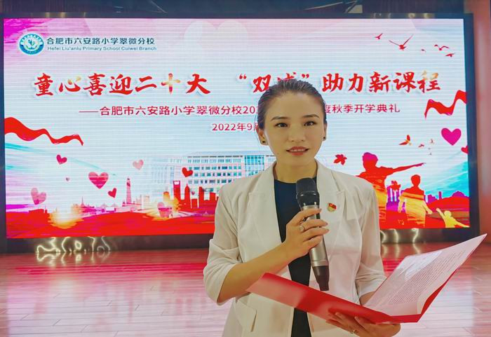 沐浴清晨,新学年已经启航;再起秋风,新学期踏上新征程。9月1日,合肥市六安路小学翠微分校举行了以“童心喜迎党的二十大,双减助力新课程”为主题的新学年秋季开学典礼。该校严格落实疫情防控要求,活动以线上录播形式开展,师生在班级统一收看。