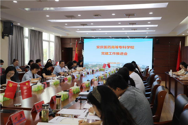 近日,安庆医药高等专科学校召开党建工作推进会。校党委书记叶林霞出席会议并讲话。会议由校党委委员、组织部部长朱三九主持。校党委委员、宣传部长朱雯,学校各二级、三级党组织负责人、党建指导员参加。