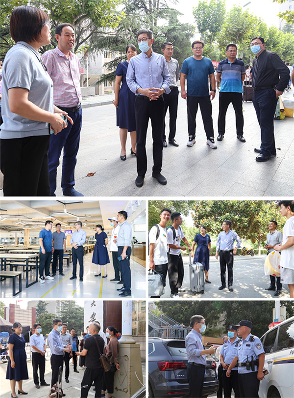 校领导一行先后来到火车站迎新点、学校大门、学院迎新点、学生食堂和宿舍等地,检查校门防疫工作开展情况,与报到新生及家长亲切交流,听取相关部门和学院负责人关于迎新工作的汇报,向忙碌在迎新一线的教师、工作人员和志愿者表示慰问,向指挥在交通一线、坚守在防疫一线的交警同志和医护人员表示感谢,对各学院、各单位以学生为中心的迎新工作表示赞许。
