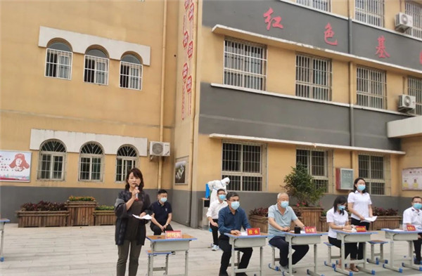 临汾市第三小学疫情防控领导小组制定了严格细致的演练方案,召开会议周密部署,系统谋划,由临汾市第三小学副校长郝燕华担任现场总指挥,教务处主任樊雅芬担任讲解,各部门职责到人、分工明确,全体教职员工共同观摩,确保开学工作顺利进行。