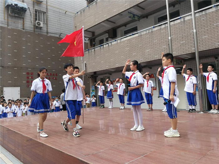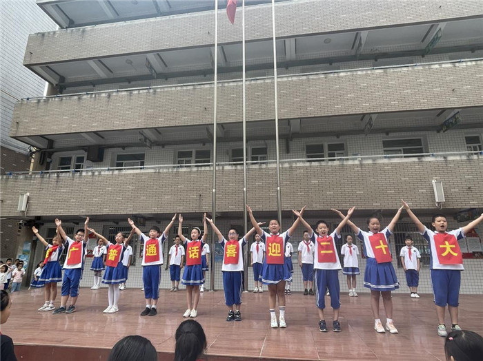 为了宣传和推广普通话,9月13日,合肥市巢湖路小学举行了“推广普通话,喜迎党的二十大”主题升旗仪式。全校师生齐聚国旗台下,由主持人景泓羽和项婧萱宣布升旗仪式开始。