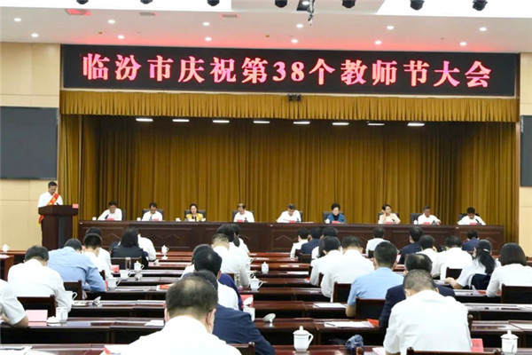 2022年9月9日,临汾市召开庆祝第38个教师节大会,共同庆祝人民教师的节日。会上表扬先进、交流经验,激励全市教育工作者更加发奋工作,更好推动教育事业高质量发展。临汾三中校长董天保作为优秀校长代表在大会发言。