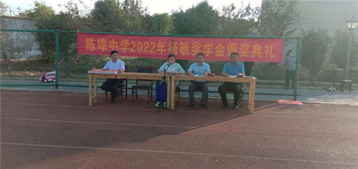 金风送爽,硕果飘香。2022年9月16日下午,庐江县柯坦镇陈埠初级中学全体师生精神抖擞地汇聚于操场,举行隆重的秋季开学典礼暨杨敏奖学金发放仪式,此次开学典礼由唐万清副校长主持。