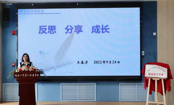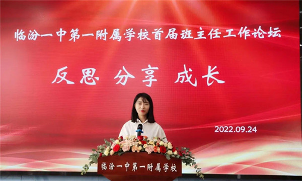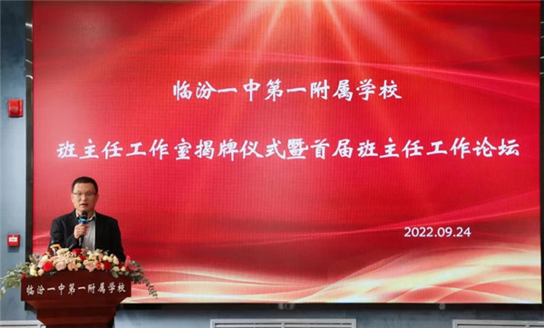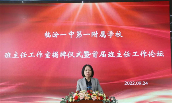 百舸争流千帆竞,借海扬帆奋者先。为进一步加强临汾一中第一附属学校班主任队伍建设,提升德育主力军的工作能力,充分发挥班主任工作室的示范引领作用,2022年9月24日上午,临汾一中第一附属学校班主任工作室揭牌仪式暨首届班主任工作论坛在会议厅举行,会议由闫锋老师主持。