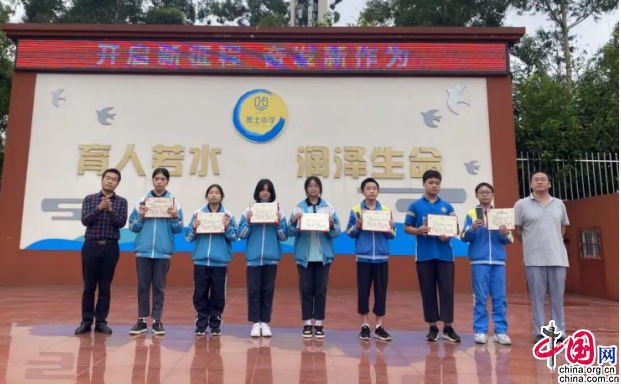 学校副校长冉茂林宣读获得龙泉驿区“驿都阳光少年”荣誉称号的学生名单;获得黄土中学新时代“五育好少年”:立德好少年、启智好少年、强体好少年、创美好少年、致行好少年称号的学生名单;获得区、镇优秀表彰的教师名单。学校领导为获奖同学颁奖,为获得区、镇优秀表彰的老师献花。