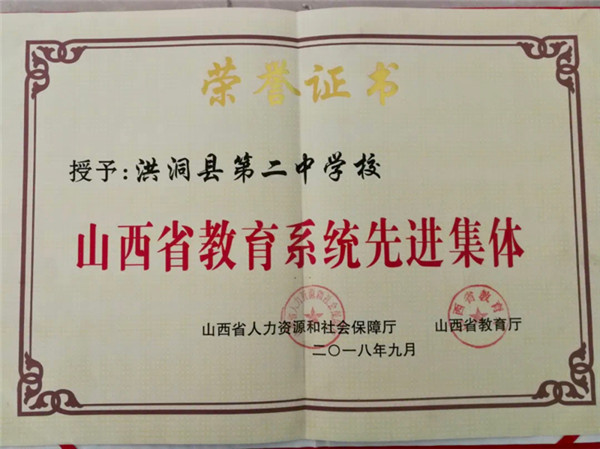 引得活水来,自有清如许。贾新平带领学校实施精细化管理,推动学校走上了高质量发展之路。学校先后被评为“山西省教育系统先进集体”“山西省文明校园”。2021年12月,山西省教育厅专家组对学校“省级平安校园”创建工作给予充分肯定。2022年,学校成为“山西师范大学大学生实习实训基地”。山西师大还制定了《洪洞二中教育质量提升未来三年行动计划》,为学校的高质量发展指明了方向。山西农业大学授予学校“优质生源基地”称号。