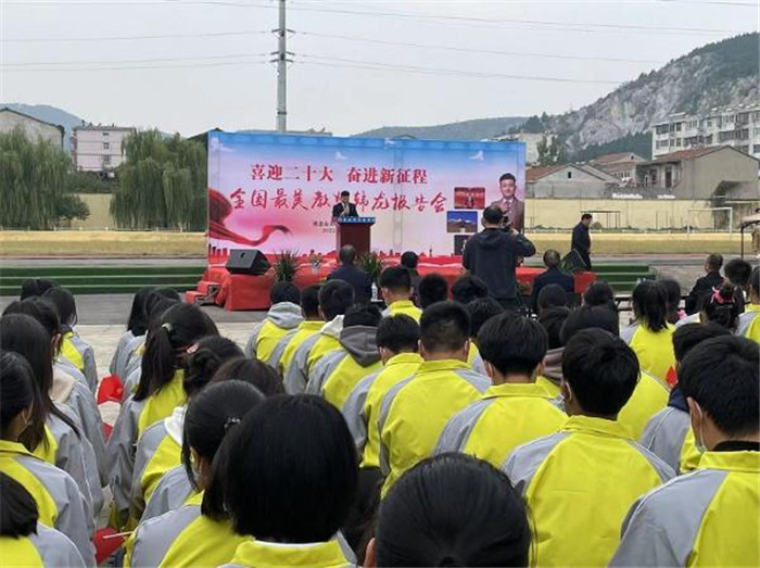 10月8日下午,淮北市开渠中学邀请全国最美教师韩龙来校举行报告会。