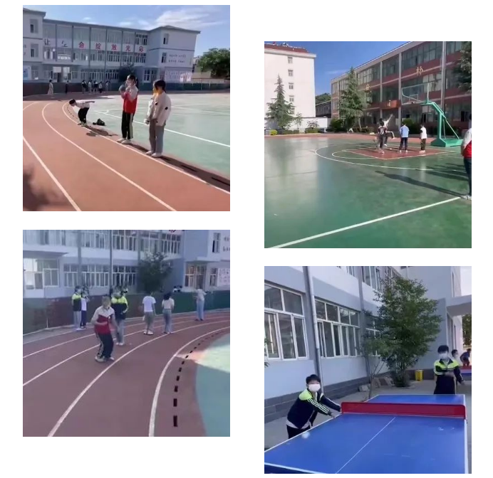 然后就到了室外体育场,小记者们逐个介绍、展示同学们正在进行的体育活动,乒乓球、篮球、扔沙包、跳远、跳绳等。随后展示了同学们读书、画画、演讲比赛、庆祝活动的舞台和场所,实地拍摄,很有现场感。小记者们的讲解也很生动、到位。