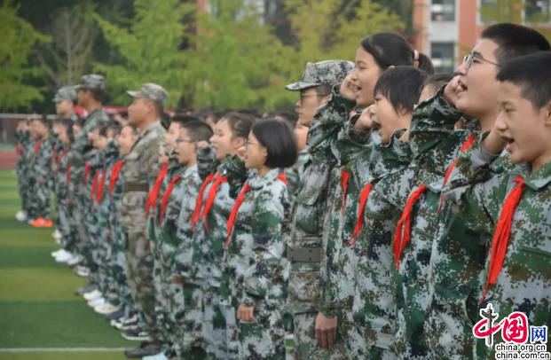 学生代表夏菱薇带领全体学生发出豪迈宣言:热爱祖国、传承文明、尊敬师长、传承美德、服从命令、听从指挥、刻苦训练、遵纪守法,争做训练标兵,为班级争光,为学校添彩,为报效祖国储蓄力量!