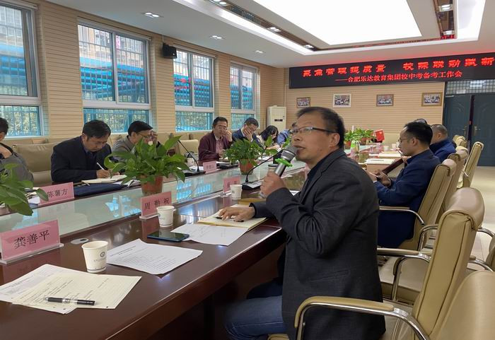 为提高管理质量,切实做好2023届九年级学生的中考复习工作,确保中考备考工作思路更清晰、可行性更强,2022年10月9日下午,合肥乐达教育集团校中考备考工作会在合肥经开自贸区实验学校成功召开,出席本次会议的人员有乐达教育集团总校长阮厚广、乐达教育集团总督学黄威、蜀山区教体局教研室主任李德山以及各集团校的领导和专家,会议由合肥经开自贸区实验学校副校长王进传主持。