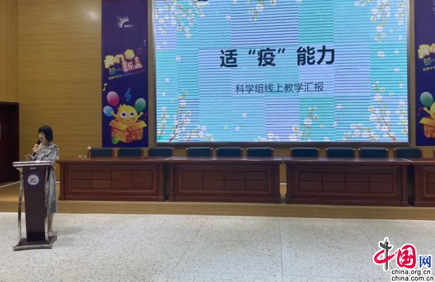 胡恒以“适‘疫’能力”为主题进行了分享。在线上教学之前,科学组共同学习了新课标,明确了科学课堂新的四维目标。针对线上教学的实际情况,全组调整了授课顺序,选择线上教学内容简单、实验材料易得的单元。此外,全组老师充分利用“国家中小学智慧教育平台”“科学声音”等资源平台,优化了课程资源。