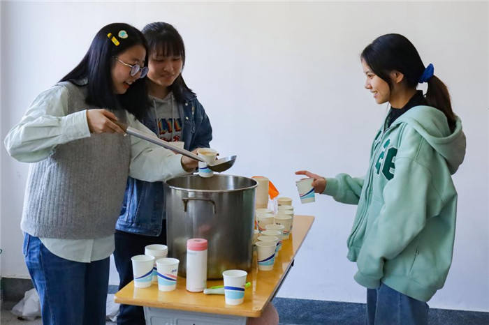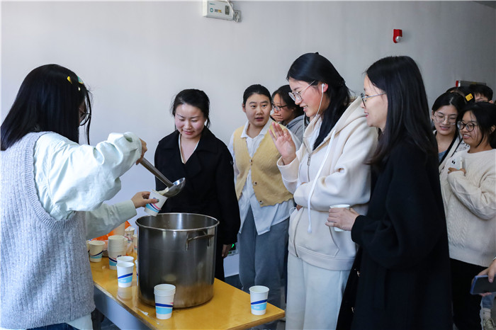 “此次活动为紧张备考的学子们送上了一份暖心的鼓励,以梨汤润肺、用行动润心,希望学生都能放平心态,全力以赴备战考研。”学院党委副书记鲍青燕表示,现在正值考研复习的“火热”阶段,学院党员师生坚持用心用情用力解决学生们的切身问题,护航学子考研路。(文/学生 李婷 黄颖 图/学生 朱秀萍 李妍纯惠)