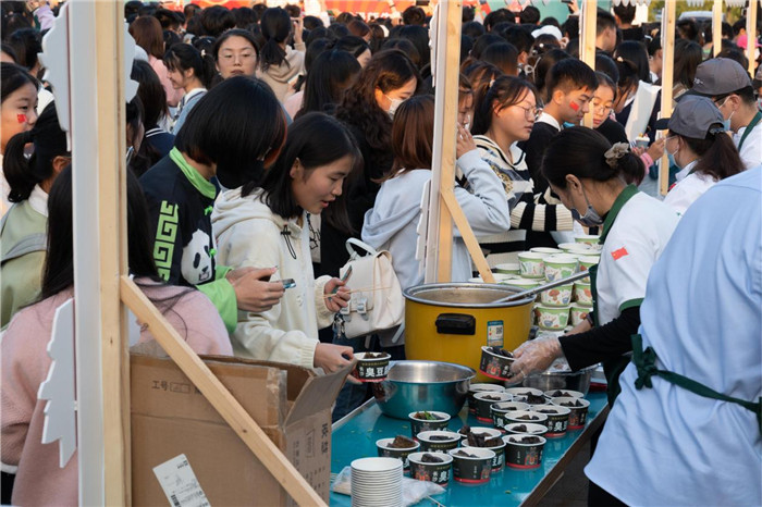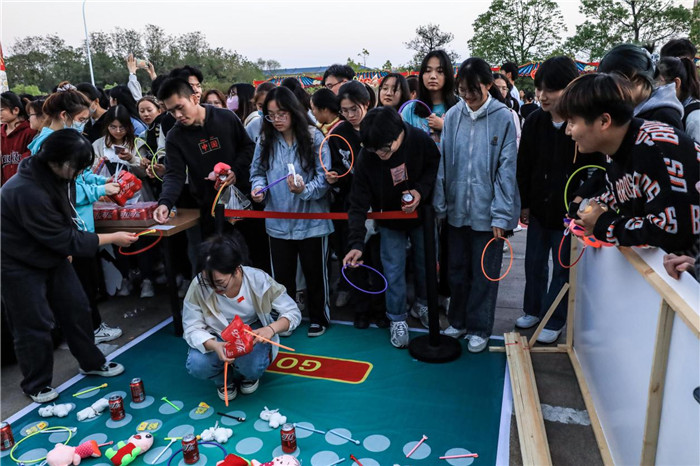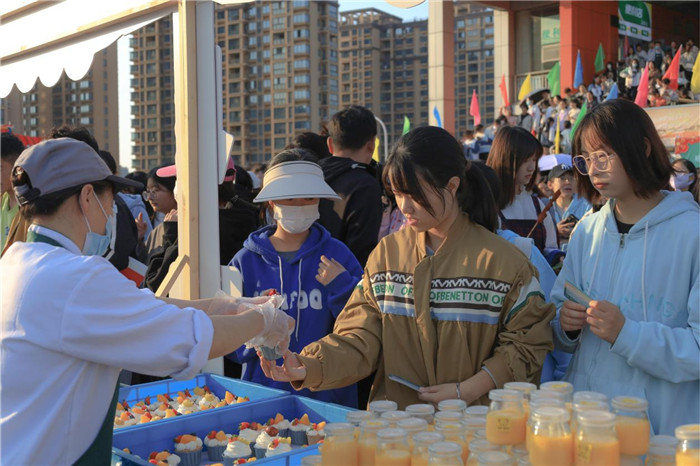 据悉,在活动举办前期,学校食堂发放了3000张美食券。学生不仅可以凭美食券免费品尝现场任一美食,参与套圈、掷飞镖等游戏,还可凭借券上的编号参与抽奖,将自行车、行李箱以及其他精美礼品“带回家”。