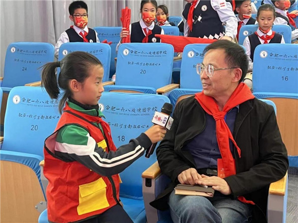 10月13日,安徽省合肥一六八玫瑰园学校西校区召开第七次少先队代表大会(以下简称“少代会”)。合肥一六八玫瑰园学校教育集团校长、少工委主任陈忠好、校长助理查月冬、校长助理姚启规、辅导员代表和少先队员代表参加本次大会。来自中国网的四位小记者对本次少代会进行了采访。