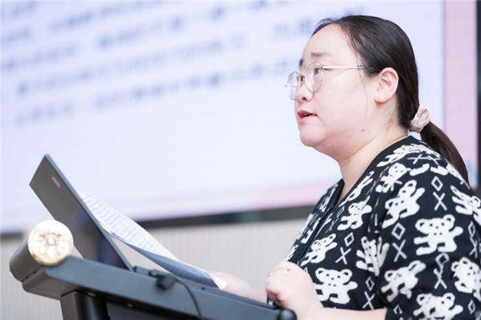 周洁老师带来数学课程标准学习心得分享。她认为数学教育不仅要传授数学知识,更重要的是培养学生的学习兴趣,教师要根据不同学段的年龄特点,创设生动有趣的情境,激发学生的学习兴趣,让学生在生动、具体的情境中,理解和学习数学知识。此外,她还说到,数学教育还应坚持问题导向,鼓励学生质疑问难,从而培养学生的高阶思维。