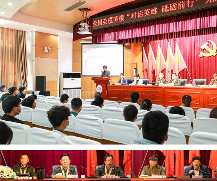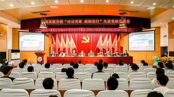 翟胜宝代表学校对全国英模、劳模的到来表示热烈的欢迎和感谢,他指出英模、劳模的先进事迹传承红色基因,传递社会正能量,营造出浓厚的爱国主义教育氛围。翟胜宝鼓励同学们向英模学习,学习他们一心向党、忠诚担当的政治本色,学习他们爱岗敬业、无私奉献的高尚情操,学习他们淡泊名利、清廉质朴的崇高境界。