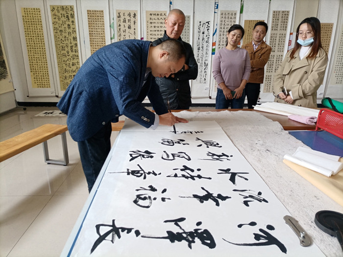 活动现场墨迹飘香,潜山市8位艺术家们尽情挥毫泼墨,现场吟诗作画,以笔传情,用墨达意,一幅幅贴近时代、催人奋进的书画作品跃然纸上。艺术家们用笔墨描绘了祖国大好河山、潜阳壮美风光、城乡发展新面貌,讴歌党的光辉历史和辉煌成就,表达了对党、对祖国的无限热爱和对美好生活的无限憧憬。