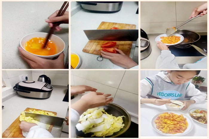 根据线上劳动课的特点,采取线上教学,线下实践,线上分享交流,线下改进提高的教学方式。每节劳动课的前部分是同学们的居家劳动分享展示时间,同学们轻松地聊聊自己的“做十分钟家务”情况,同学们用视频展示了自己的家务活,如整理过的书架,叠好的衣物,做的一道菜,养的花草等等。