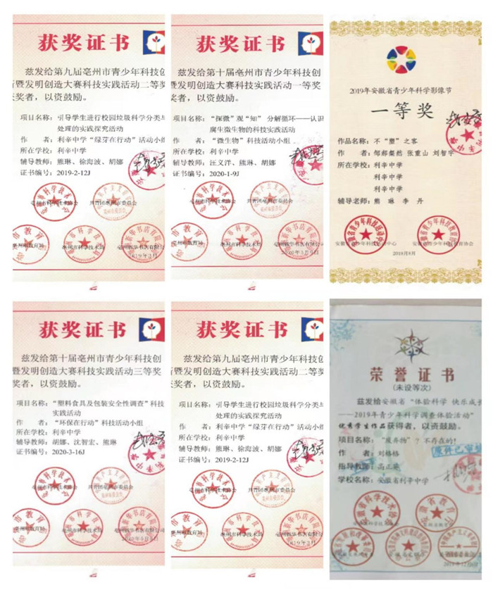 此外,学校一直积极用绿色理念引领师生共建教科研绿色成果。在教科研活动中,该校大力推广绿色理念的教科研成果。近年来学校在环保方面成效突出,获得安徽省优秀调查体验活动学校,部分老师被评为安徽省科学调查体验活动优秀教师。先后引导学生进行校园垃圾分类与实践活动中获得省、市科技创新二等奖,一些绿色环保科技创新作品分获省、市级奖项。