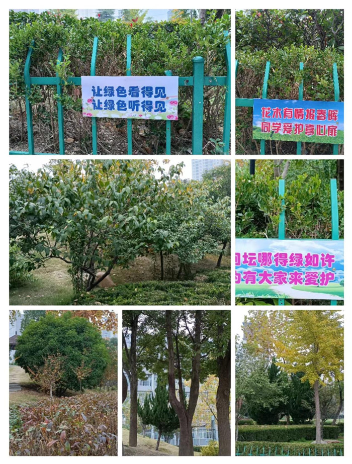 建设绿色校园,让“绿色”在校园中彰显。校园绿地绿化已超过校园面积的30%,到处可见绿色植被的覆盖景象,学校一年四季郁郁葱葱,生机盎然,鸟语花香。形成多层次绿化结构,高层次的树木与下面草皮、花草相结合,高低搭配得当,彰显绿色校园建设成果。