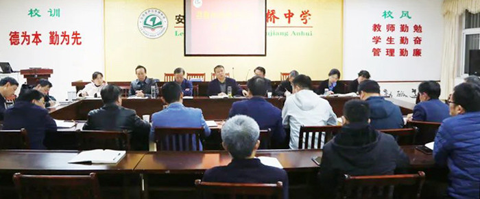 11月17日上午,庐江县教体局党委委员王卫东、教研室主任傅求宝等一行11人对乐桥中学展开全面教育教学视导。2023年高考,安徽省将是新教材老高考模式,必将面对新的考试内容与新题型;2022级高一,大部分高一授课教师面对的是新教材、新课程、新教学理念。身怀迫切的责任感与使命感,视导专家们7:30分赶到乐桥中学,不顾一路风尘,直奔教学楼。