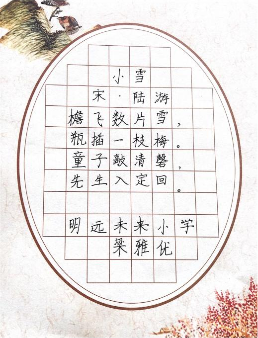 离“小雪”只剩下了两天,我在等待着那一天,期待着为数不多的童年最后的“小雪”,希望在十一岁的童年留下如幼时那般最美好,最纯洁的记忆。