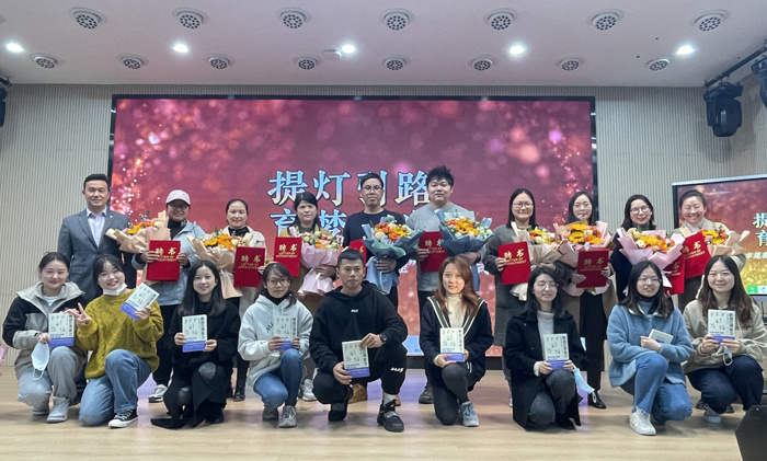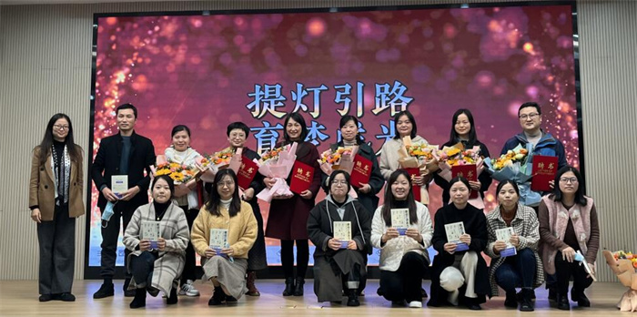 主持人宣布了“青蓝工程”师徒结对名单,在热烈的掌声中,导师们纷纷走上台,校长邓威、党支部副书记梁美、副校长徐光明等共同为导师们颁发了聘书。