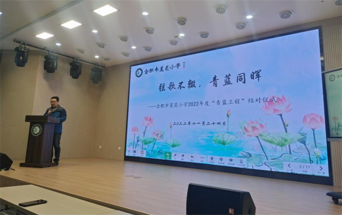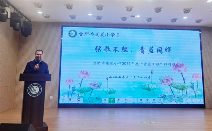 为充分发挥学校骨干教师的引领作用,帮助青年教师尽快适应教育教学工作,促进青年教师不断成长,合肥市莲花小学举办了2022-2023学年度“青蓝工程”结对仪式。本次结对仪式于11月24日在学校多媒体教室举行。