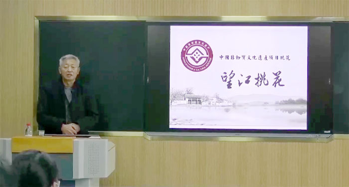 王世福老先生向全体师生娓娓道来拾回失传技艺的历程,通过20多年的收集、整理、研究、学习,细心研究对照,他渐渐悟出望江挑花的真谛,吃透了望江挑花设计理念,并将望江挑花的各种针法融会贯通。“望江挑花”在传承中逐步得到了发展,通过不断地探索与创新,最终钻研出了挑、钻、游、织等四种针法技艺。它以针法多变、正反成画、色彩素雅、图案别致、古朴典雅等独特工艺形成了深厚的文化底蕴,集艺术性与实用性于一体。王世福对望江挑花的探索和创新不仅包含了艺术精神,更蕴含着严谨的科学精神,其创作的挑花作品的构图元素主要取材于生活,有十二生肖、山水风光、日月星云和各种吉庆文字,是传承中华传统文化的重要载体。