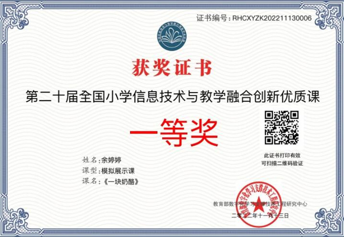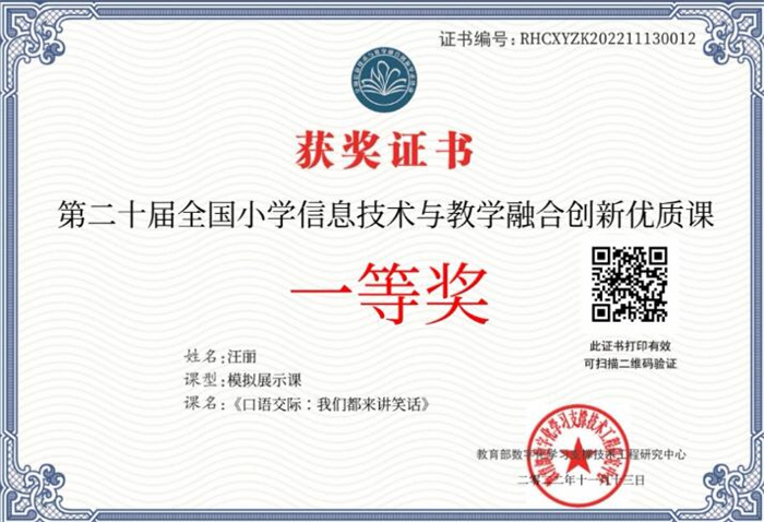 合肥一六八新桥学校两位教师在第二十届全国中小学信息技术与教学融合创新活动中荣获一等奖!