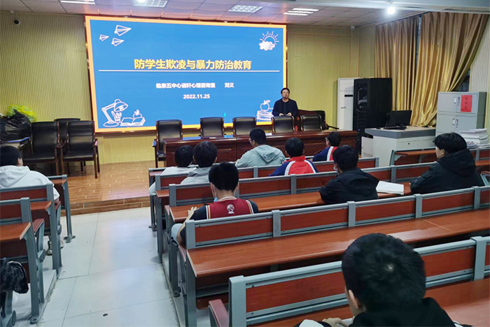 刘义老师结合青少年犯罪典型案例,用生动形象、通俗易懂的语言向同学们介绍了什么是校园欺凌、校园欺凌的危害以及如何防止校园欺凌、当遇到校园欺凌时应怎样保护自己等法律知识和安全常识。同时引导同学们在学习生活中要做到团结友爱、互相帮助、相互学习、共同进步;遇事要冷静、理智,不鲁莽冲动,不意气用事,不说过激的话,不做过激的事;要增强法治观念,懂得依法办事。引导和鼓励同学们在日常生活中自觉抵制校园欺凌,既不能做校园欺凌者,也不能做校园欺凌的旁观者,更要避免成为校园欺凌的受害者,在关键时刻要拿起法律的权杖勇敢地捍卫自身的合法权益,大声的向校园欺凌说“不”。